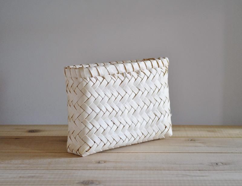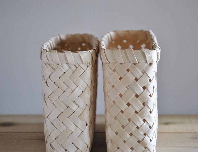 樹齢20〜30年のイタヤカエデの若木の幹を、厚さや幅を揃えて帯状に裂いて材料をつくり、それを編んでいく工程は気の遠くなるような手作業です。