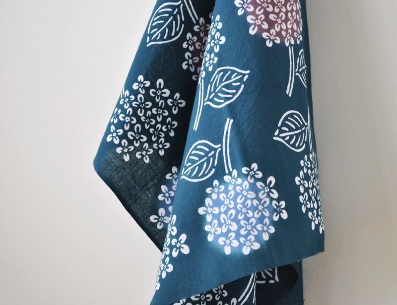 デザインと型彫りを自身で手がけ、伝統技法である「注染」で日本の職人が丁寧に染め上げる手ぬぐい。