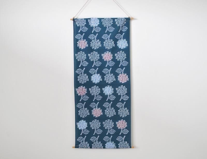 梅雨時期に合わせて暖簾や間仕切りに仕立てたり、また出窓やテーブルなどの敷物にしたり。グラスを置いてグリーンを飾ったら、それだけで爽やかな風が吹き込んできそうです。