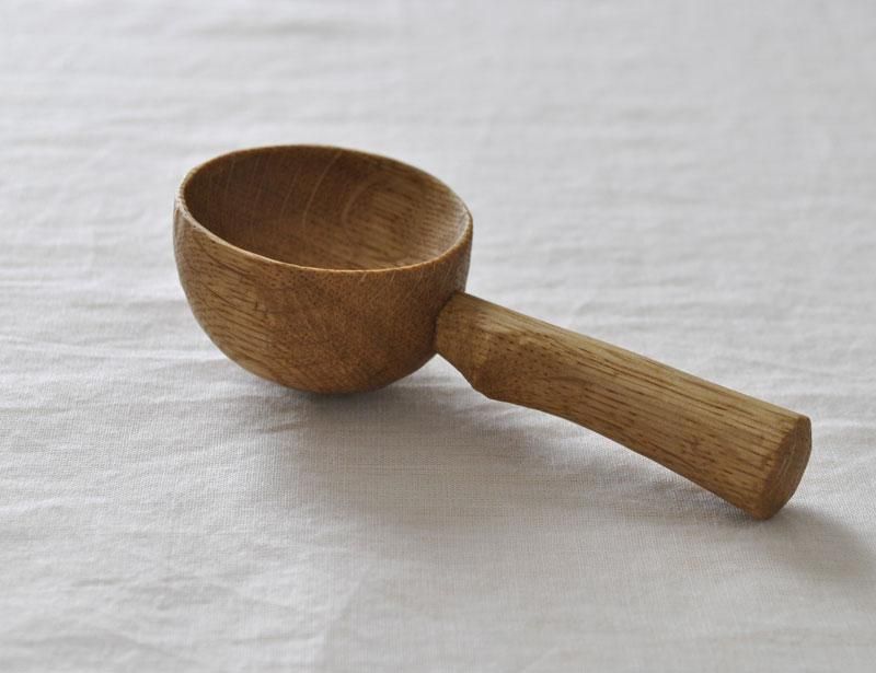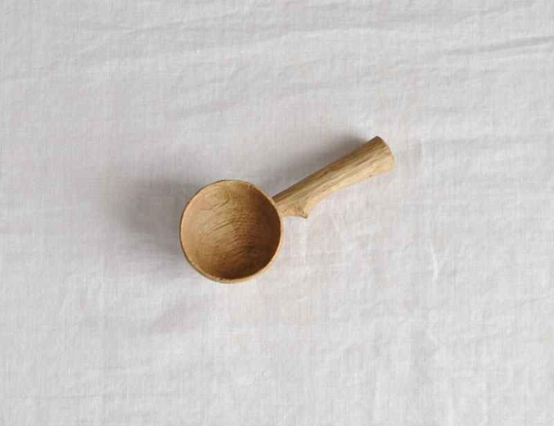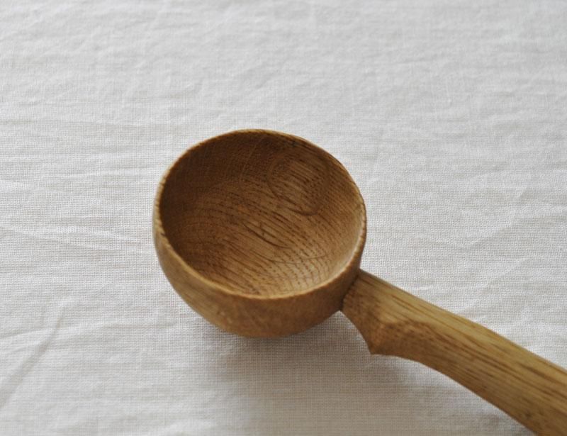 ミズナラ特有の木目と虎斑が素朴な風合いのメジャースプーン。