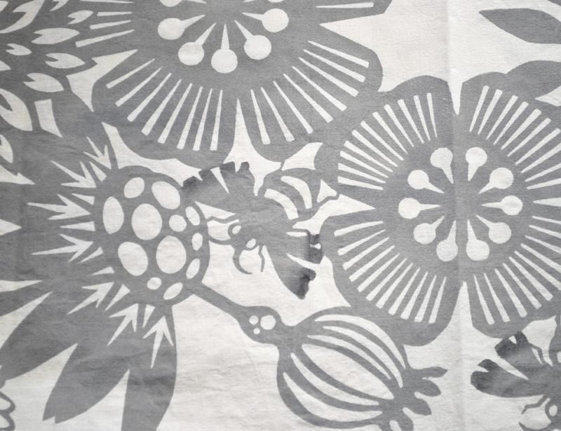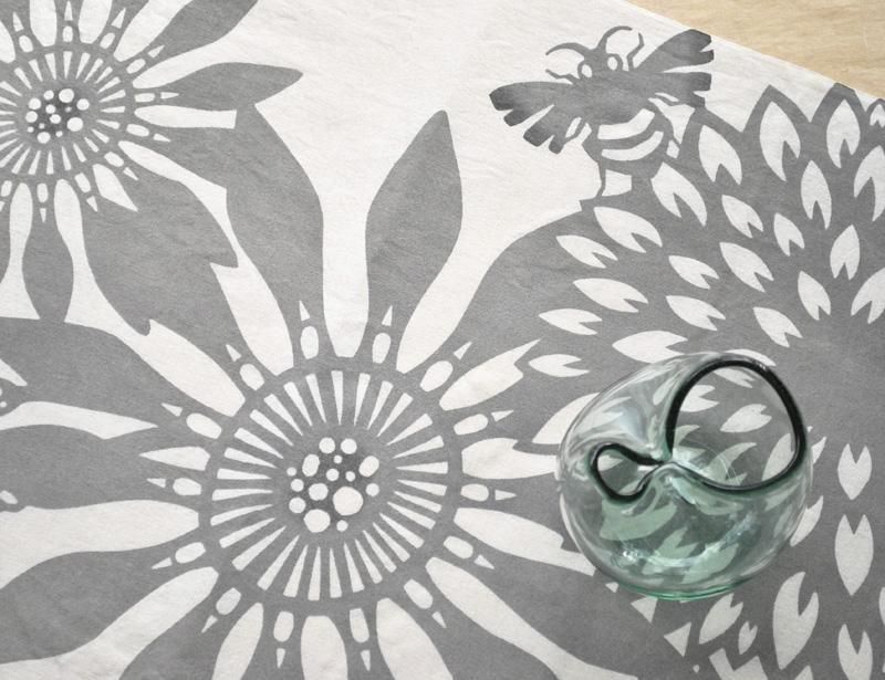 ダイナミックに花とミツバチを配置し型染めした美しい染布です。