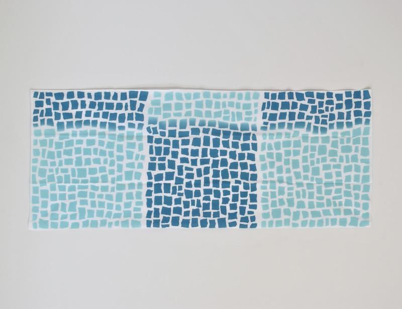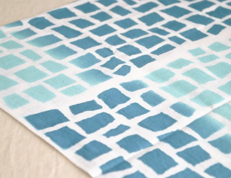 手でちぎった紙片をランダムに並べたような、緩やかなラインが楽しいアトリエラヒヨには珍しい幾何学デザイン。2色が混じり合う境界線は、なんとも美しい色合いを生み出します。