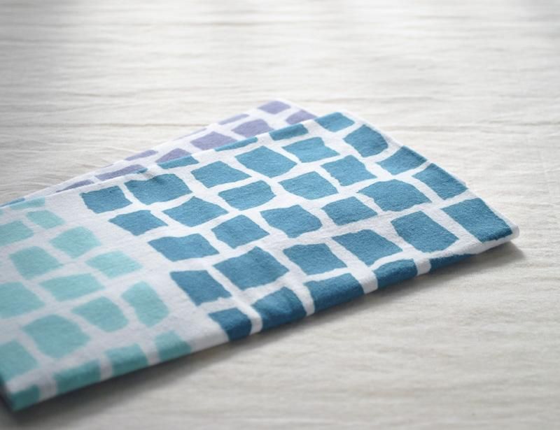 デザインと型彫りを自身で手がけ、伝統技法である「注染」で日本の職人が丁寧に染め上げる手ぬぐい。