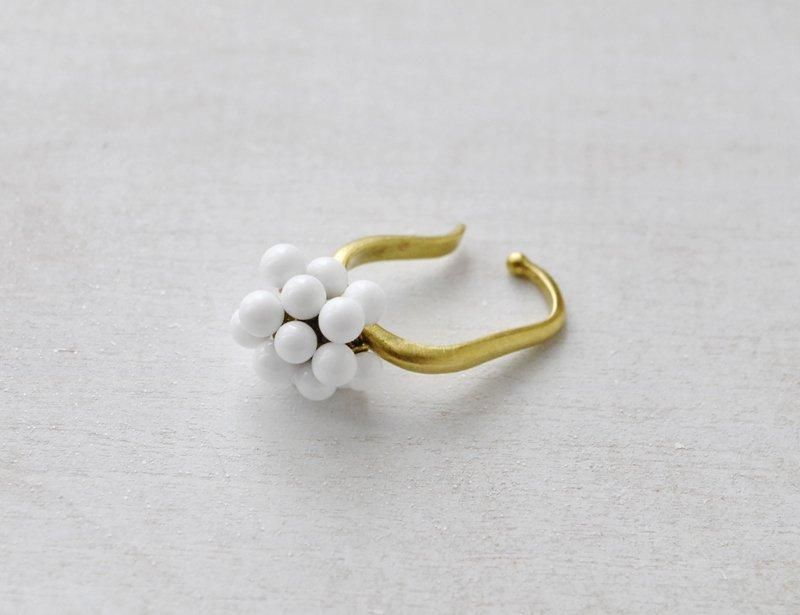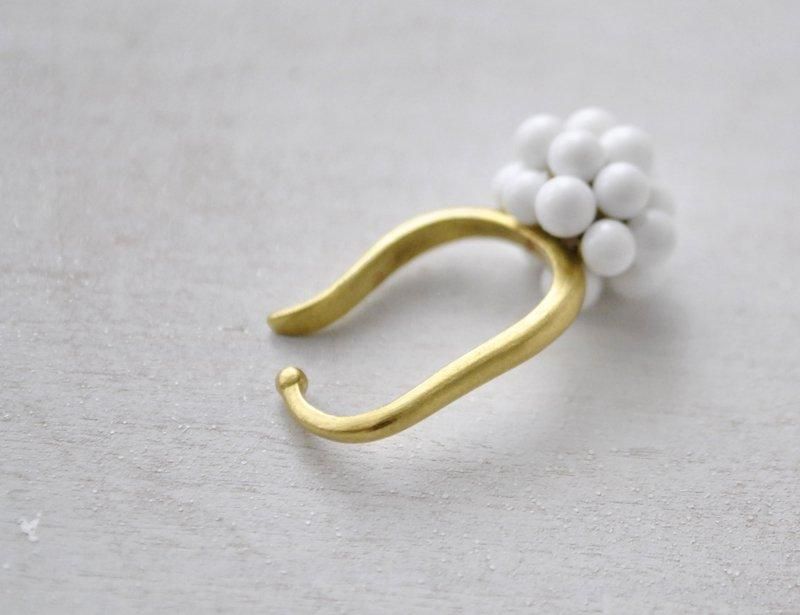 真っ白な不揃いの小さなつぶつぶガラスが集合したイヤーカフ。