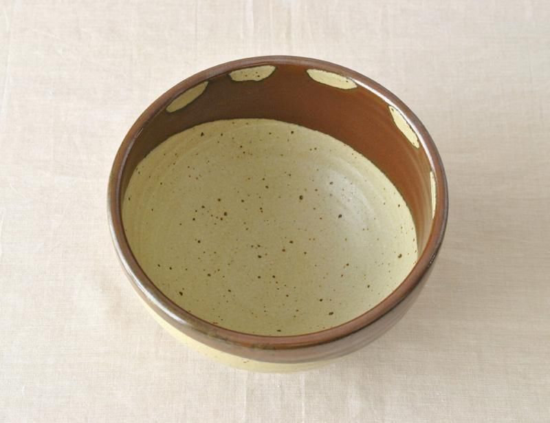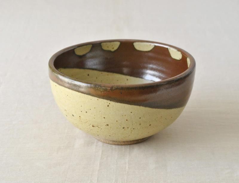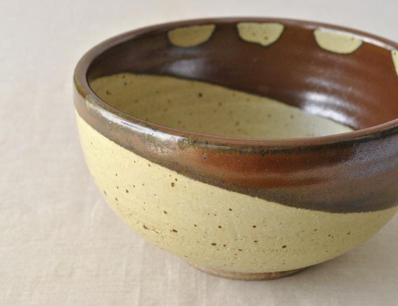 黄色と茶色のツートーンが温かみのあるどんぶり。