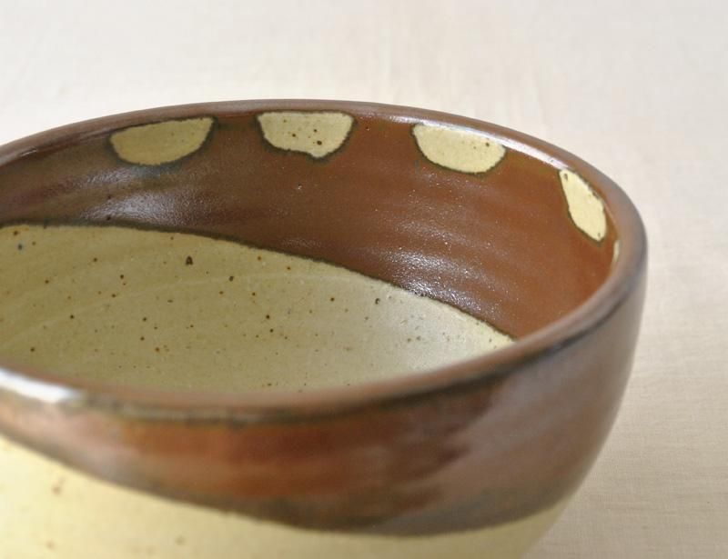 フチに柿釉を回し掛けることで、欠けにくく丈夫に仕上げています。