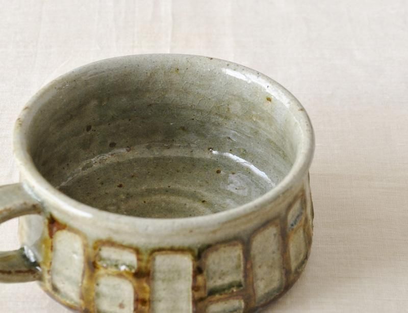 窓のように切り出されたモダンなデザインが楽しいスープカップ。