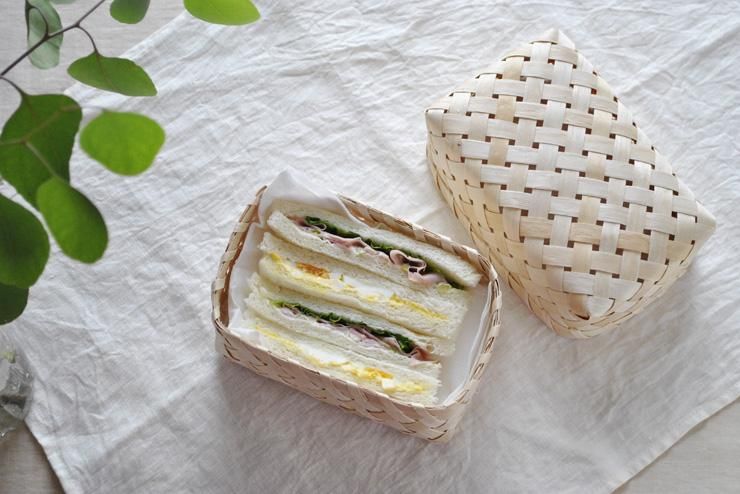 おにぎりにプラスアルファのおかずをちょこっと、またはサンドウィッチもいいですね。布ものを収納したり、文房具入れやお裁縫箱などにもおすすめです。