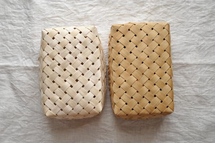 白木の色が清々しい、素朴でやさしい風合いの弁当かご。