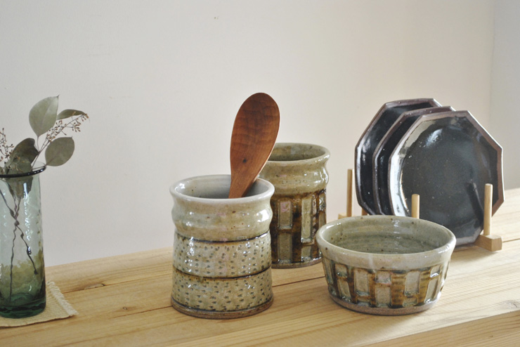 程よい重さで安定感があり、キッチン周りの道具をスッキリと収納できます。