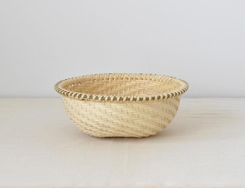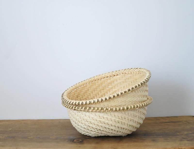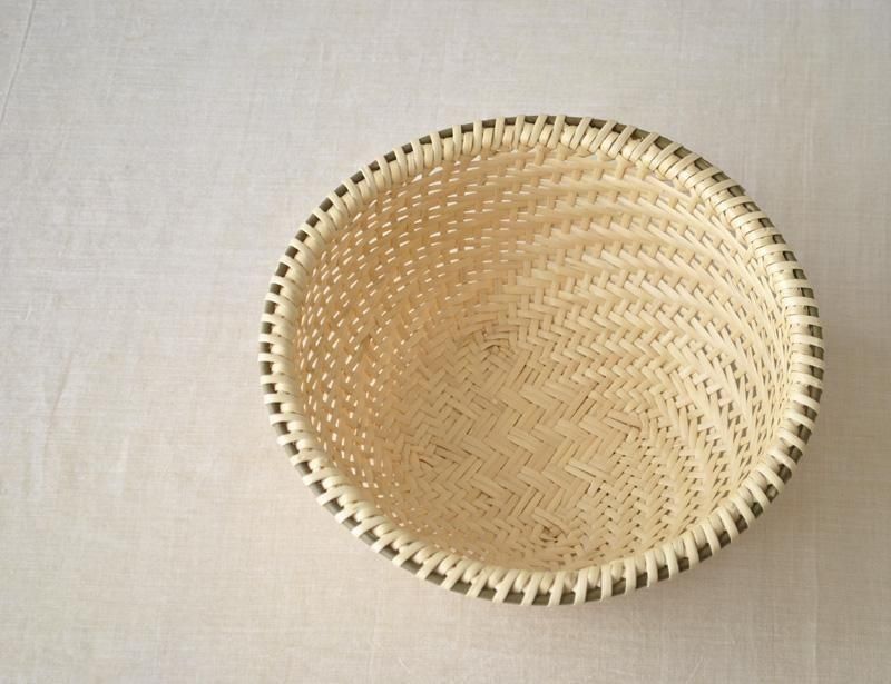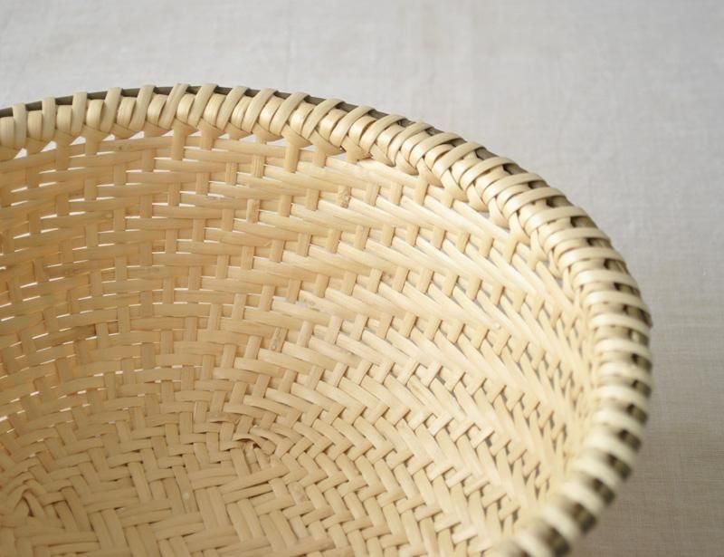 こちらは高さが低めのシンプルなざる。ヒゴはささくれが少なく丁寧で、しっかり固めに編まれています。お野菜の洗い除けにしたり、パンや果物、お菓子入れなど万能にお使いいただけます。